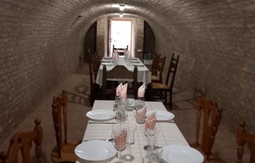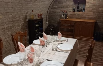 Vendégek részére felszerelt közös konyha, ápolt udvar és hangulatos borospince