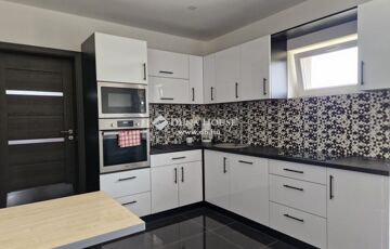 A ház fűtése elektromos kazánnal és padlófűtéssel van megoldva, emellett három darab klíma is biztosítja a megfelelő hőmérsékletet az ingatlanban. A vételár része egy modern, magasfényű fehér-fekete konyhabútor beépített gépekkel, amely tökéletesen illeszkedik a ház elegáns stílusához.
