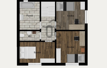 1 földszinti szoba (nappali), 3 emeleti hálószoba