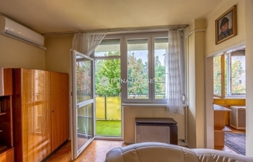 Angyalföld zöldövezeti részén, a Keszkenő utca és a Szent László út sarkán eladó egy 1. emeleti, 51 m²-es, loggiás, kelet–délkeleti tájolású, világos 2 szobás saroklakás.