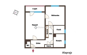 Szinte minden helyisége ablakos, zöldre néző, a loggia parkosított játszótérre tekint. A lakás praktikus, körbejárható elrendezésű: 18 m²-es nappali, 12,57 m²-es hálószoba, nagy konyha, külön WC, tágas előtér, kamra és bőséges tárolókapacitás.