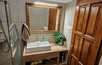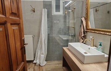 A 360 cm-es belmagasság és a masszív, 90 cm vastag falak egyedi hangulatot és igazi értékállóságot biztosítanak. Az ingatlan csendes, barátságos és jó elosztású, télen a meleget gázkazán és hűtő-fűtő klíma garantálja.