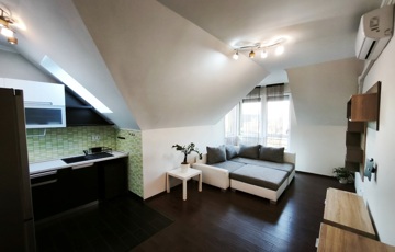 A fiatalos és világos otthon kiváló elrendezéssel rendelkezik, így ideális választás lehet pároknak vagy egyedülállóknak egyaránt. A lakás különlegességét egy erkély és egy franciaerkély adja, amelyek bőséges természetes fényt és kellemes szellőzést biztosítanak.