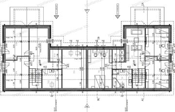 Mindegyik ingatlan 124,5 m2-es (+ fedett terasz 10 m2), nappali + 4 hálós, 2db fürdőszobás, gardrób helyiség, garázs (+21 m2)