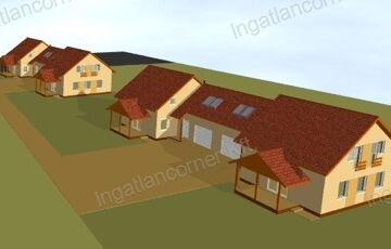 Mindegyik ingatlan 124,5 m2-es (+ fedett terasz 10 m2), nappali + 4 hálós, 2db fürdőszobás, gardrób helyiség, garázs (+21 m2)