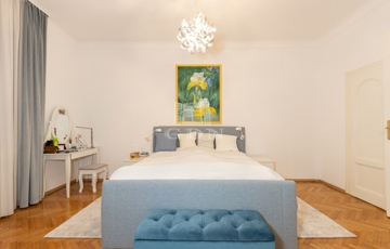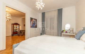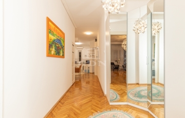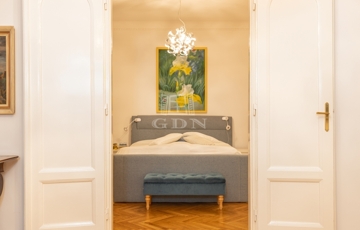 A felújított eredeti parketta, a magas belmagasság és a klasszikus részletek elegáns polgári hangulatot teremtenek, amelyet a modern kényelmi elemek (pl. klíma) egészítenek ki. Az ingatlan teljes körűen felújított, azonnal költözhető.