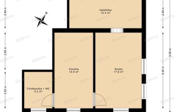 - konyha, szoba + tágas hálófülke, fürdőszoba WC-vel elrendezés;