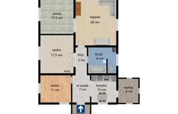 - Nappali, konyha, fürdő,3 külön bejáratos szoba, kamra, közlekedő.