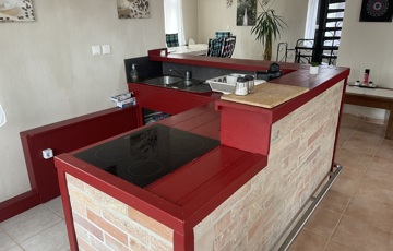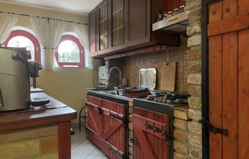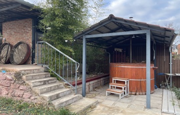 A kert igazi kincs: fatüzelésű dézsa, kerti konyha tűzhellyel és kemencével, külön kerti tusoló és WC, valamint egy műhely is helyet kapott, így a kikapcsolódás és az alkotás egyaránt adott.