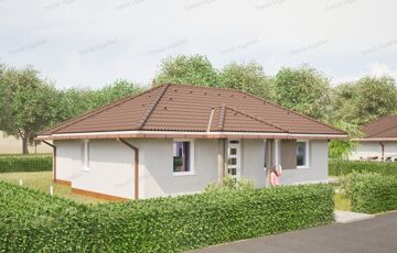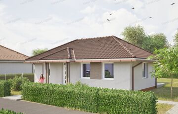 A ház 30-as falazóelemből, 15 cm-es homlokzati szigeteléssel, 3 rétegű műanyag, hőszigetelt üvegezésű nyílászárókkal kerül kivitelezésre. Az ingatlan fűtését kondenzációs kazán biztosítja, minden helyiségben padlófűtéssel. A nappaliba hűtő-fűtő klíma kerül felszerelésre. Felár ellenében hőszivattyús fűtés, kerti csap, riasztó előkészítés, klíma- és redőnyelőkészítés, térkövezés stb. kérhető. A ház belső elrendezése a készültségi fokhoz mérten még változtatható.
