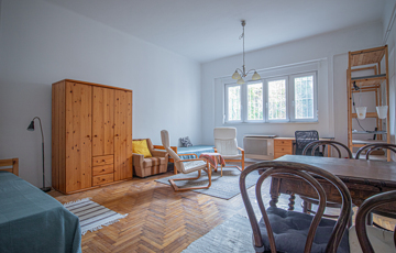 A lakás ablakai a ház kertje felé néznek, ennek köszönhetően csendes, nyugodt a lakás.