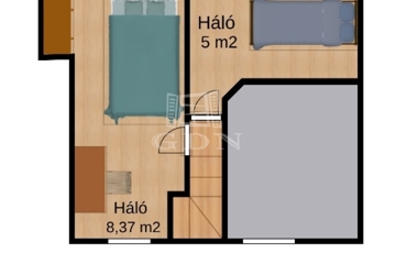 • Kétszintes kialakítás – nappali, a felső szinten hálórész és külön vendégsarok