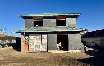 - Az épület 30-as téglából és Dryvit szigeteléssel készül, korszerű hőszivattyús fűtéssel, teljes házat lefedő padlófűtéssel és minden helyiségben klímával. A háromrétegű nyílászárók rejtett redőnytokkal, redőnyökkel és szúnyoghálóval érkeznek. A burkolatok és szaniterek még választhatók, így az otthon stílusa szabadon alakítható.