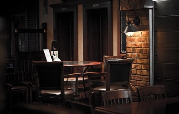 -A vendégtérben nagy üvegfelülettel rendelkező üvegportál, bőr és fa bútorzat, berendezés, egyedi csillárok, hangulatos dekoráció lett kialakítva.