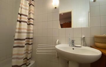 A fürdőszoba zuhanyzós, a meleg vizet gázvízmelegítő szolgáltatja, a WC pedig külön helyiségben van, ablakos.