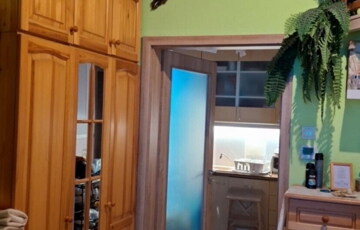 A másik lakás szintén nagy utcára néző szobával, konyhával és zuhanyzós fürdővel, WC-vel rendelkezik, ezt a lakást jelenleg bérlő lakja.