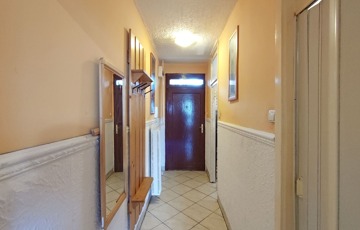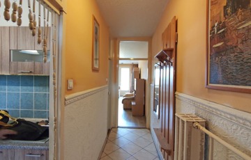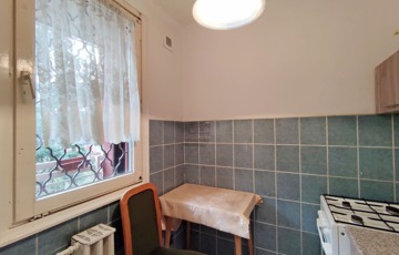 A több ponton záródó biztonsági bejárati ajtón belépve, a közlekedőből balra nyílik a világos, ablakos konyha, ami a csendes, parkos belső udvarra néz. Bútorzata újszerű, a járólapokat 6 éve cserélték. Mellette nyílik a WC-s fürdőszoba, amit szintén 6 éve újítottak fel. A közlekedőben szemben haladva a 20 nm-es világos szobába juthatunk, innen reggelente a 4 nm-es napfényes erkélyre léphetünk ki.