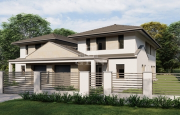 A garázzsal épülő ház, nappalival + 4 szobával, 3 fürdőszobával + mosdóval, valamint egy 24 m2-es kertkapcsolatos terasszal, kerül kialakításra.