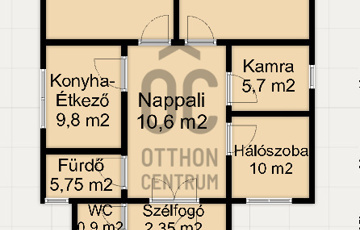 - 3 tágas szoba+ nappali, konyha + étkező, fürdőszoba, külön WC, közlekedő, terasz, kamra, tároló helyiségekből áll.
