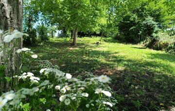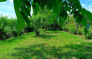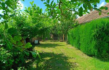 A telek 1483 m2-es, teljesen körbe kerített, gondozott, több gyümölcsfával beültetett. Pl. cseresznye, körte, dió, szilva, alma, meggy, szőlő, málna