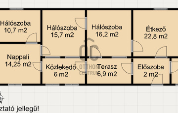 - a földszintes lakóépület terei tágasak, nagyon jó elosztásúak, 5 hálószoba, nappali, konyha + étkező, előszoba, fürdő, WC, terasz helyiségekből áll