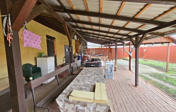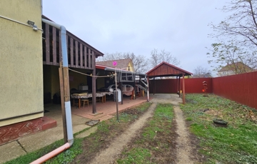 Az ingatlan minden oldalról körbe van kerítve. A főépület előtt lehetőség van virágok, díszfák, vagy konyhakert kialakítására. Az épület mögött elhelyezkedő garázshoz és autó beállóhoz gépkocsi beálló út vezet, melynek eredményeként akár 4-5 autónak is van hely.