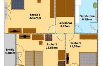 - a tetőtér (2. emelet) hasznos alapterülete: 22,23nm.