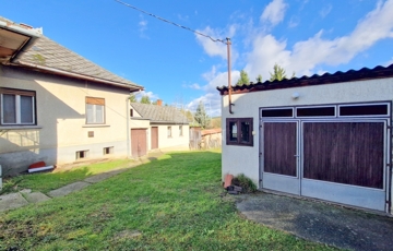 Az első udvarrész minden oldalról körbekerített, megtalálható rajta egy nagyobb méretű különálló garázs, mely árammal ellátott.