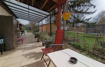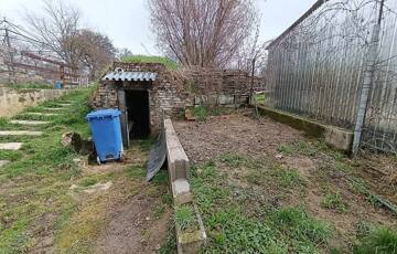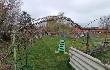 Alsó rész (1800 nm bekerített): A ház és a melléképületek kerítéssel körbezártak, bőséges gyümölcsfákkal (alma, körte), fólia sátor kerettel kialakított 4 magaságyással.