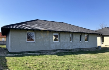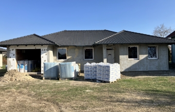 A ház stabil, 30 cm-es Porotherm téglafallal és 15 cm hőszigeteléssel készül, amelyhez modern, 3 rétegű műanyag nyílászárók, redőnyök, szúnyoghálók és párkányok tartoznak.