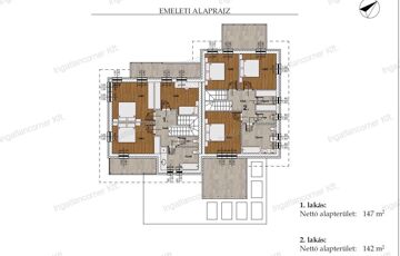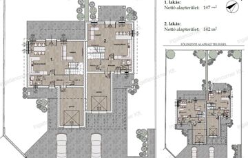 1.lakás: 142m2 nappali 3 hálószoba 177.500.000 Ft 500m2-es telekkel