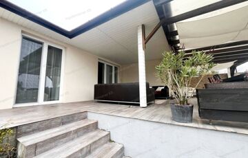 A fedett teraszon pergola alatt feszített víztükrű, dupla motoros jacuzzi található, saját puffertartállyal – az ár részét képezi.