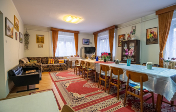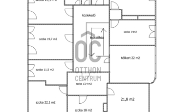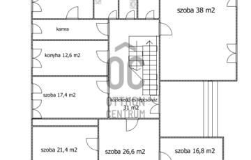 - Tágas közlekedő és lépcsőház, ahonnan a szobák nyílnak,