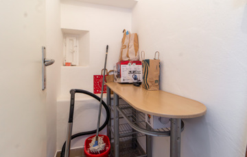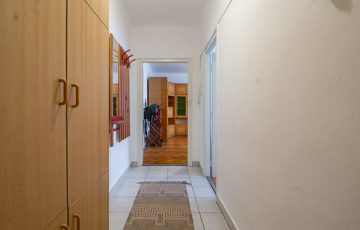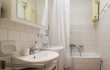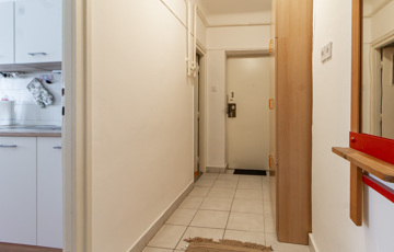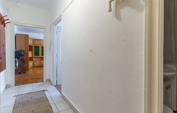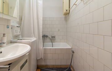 A fürdőszoba káddal és mosógéppel felszerelt. A közlekedőben, pedig szintén helyett kapott egy nagyméretű tárolószekrény.