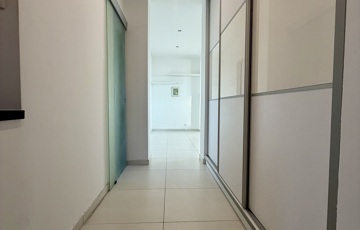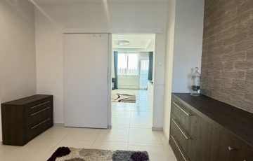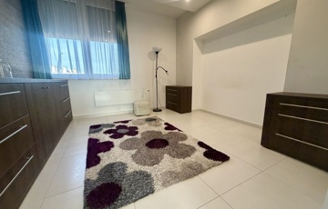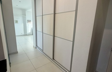 Az előszobában és a hálóban nagy méretű, magasfényű beépített szekrények kínálnak bőséges tárolóhelyet. A burkolatok, beépített bútorok, világításelemek, és az ízléses tolóajtók mind a praktikum, és a letisztultság jegyében készültek.