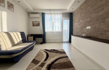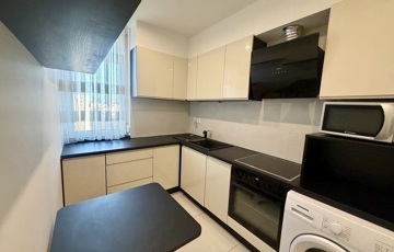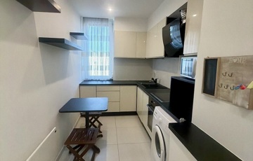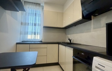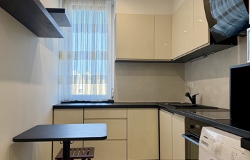 A konyha modern, beépített gépekkel felszerelt: AEG indukciós főzőlap, szagelszívó, Electrolux sütő és mosógép. A lakásban Daikin hűtő-fűtő klíma biztosítja az egész éves komfortot.
