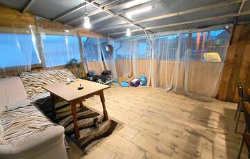 A hátsó szobából közvetlen kijárat nyílik a fedett teraszra.