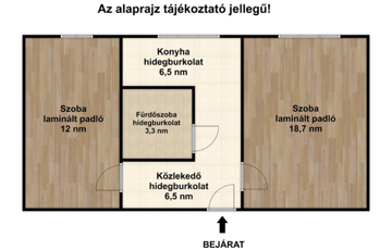 - Laminált szobák, hidegburkolat a többi helyiségben.