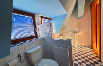 -Emelet: lépcsőház(11,16m2), közlekedő(2,64m2), WC+kézmosó(4,16m2), 2 szoba(20,48m2, 12,41m2), gardróbszoba(5,6m2), fürdőszoba+WC(10,2m2), erkély(2,5m2).