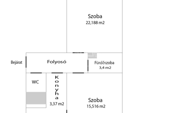 Lehetőség van arra is, ha esetleg valaki a nagyobb szobából szeretne amerikai nappalis konyhát kialakítani, akkor a jelenlegi konyhából és étkezőből tud nyerni még egy hálószobát.