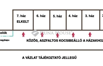 Egy 7 házból álló, lakópark jellegű környezetben épül, közös elektromos kapuval, vendégparkolókkal és aszfaltozott belső úttal. A területen közvilágítás kerül kiépítésre, + minden háznál előkészített kábelezéssel az udvari világításhoz. A 7 házból egy már elkelt, hat még elérhető.