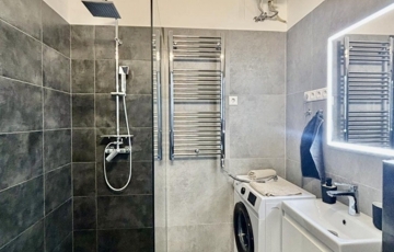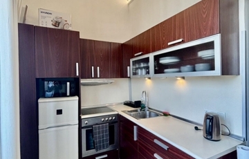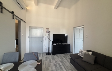 Az ingatlan egy jó állapotú, liftes ház legfelső emeletén helyezkedik el, 46 m2-es, amerikai konyhás nappaliból és egy tágas hálószobából áll. A lakás klímával felszerelt. Az ingatlan néhány évvel ezelőtt lett teljesen felújítva. A vételár a bútorokat és a berendezéseket is tartalmazza.