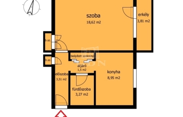 • a lakáshoz egy megközelítőleg 4 m²-es, polcozott tároló is tartozik, mely a pinceszinten található, kulccsal zárható ajtóval