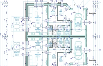 Telek: 1300 m² összesen (lakásonként min. 400 m² saját, leválasztott rész)