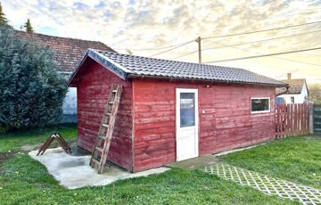 A lakóház mellett található egy tágas, 25 nm-es, elektromos kapuval felszerelt, szigetelt garázs, ahova szintén be van vezetve az áram.