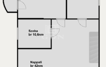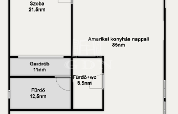 Ezen a szinten egy bruttó 42nm terjedelmű nappali, bruttó 10.6nm-es dolgozószoba, 18nm-es világos erkélyes szoba, illetve egy bruttó 14nm-es fürdőszoba található