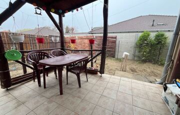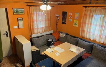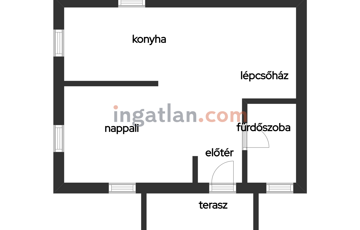 Elosztás:földszinten-fedett terasz,előtér, nappali, fürdőszoba, nagy étkezős konyha.