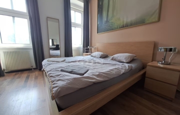 Az utcára néző ablakoknak köszönhetően a lakás világos és barátságos atmoszférát áraszt.
