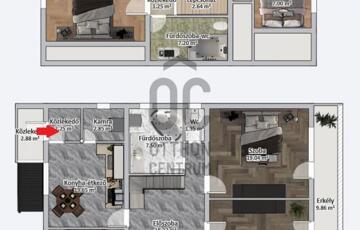 - Az ingaltan alatt található egy teljes értékű garázs, és egy tároló.