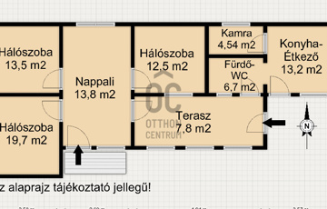 - helyiségek: 3 tágas hálószoba, nappali, fedett veranda, konyha-étkező, kamra, fürdő, külön WC